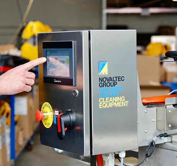 The Robo-Steam automatic belt cleaner allows for fully automated modular belt cleaning. This professional belt washer is composed by an aluminium and stainless steel frame and a 7″ control panel to set different parameters such as belt length, speed, sector numbers, etc.
