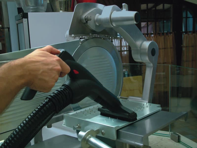 Indispensable for cleaning cooking hoods and ventilation ducts, washing and drying glass and tiles, and eliminating the use of ladders and rags, this compact and robust steam cleaner sanitises in compliance with HACCP regulations thanks to the 175°C steam.
