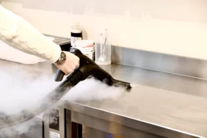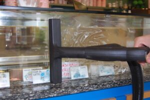 A high-temperature steam combined with a powerful suction system is able to dissolve and recover sugar and flour residues. It removes encrusted dirt form baking trays and ovens in a quick and fast way: also, excellent to recover condensation in refrigerators and leavening cells.